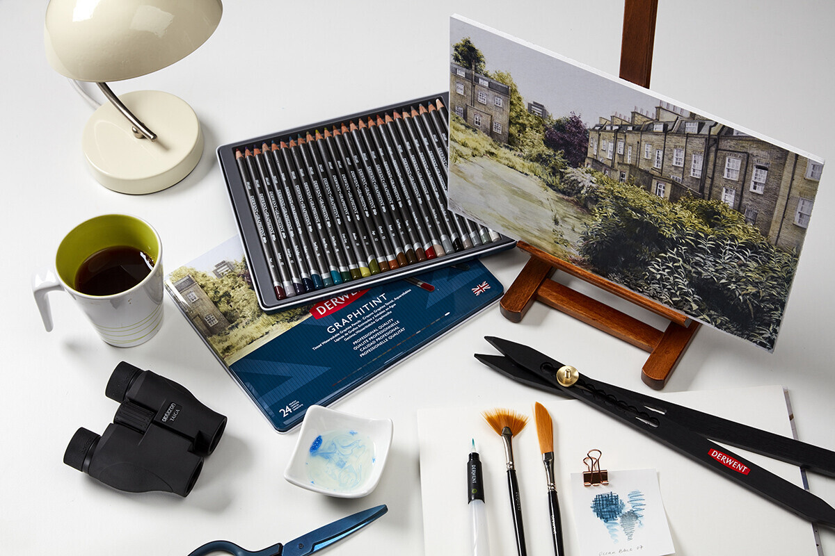 Pastelky Graphitint v sobě jedinečným způsobem kombinují grafit a barvu. Elegantní barevný grafit rozmyvatelný vodou. Za sucha získáte nádech barvy, za mokra živé odstíny. Ideální pro krajiny, studie zvířat a portréty. Dostupné ve 24 odstínech jednotlivě i v sadách.