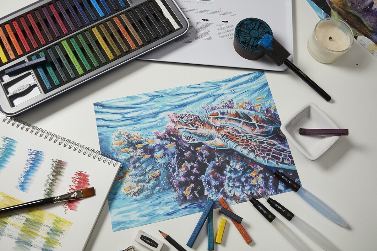 S pastelkami Derwent Artists budete mít neomezené možnosti výběru! Jsou volbou profesionálních umělců již od roku 1938, a není těžké pochopit proč. Nabídka obsahuje 120 barev a jejich vosková textura je ideální pro vrstvení a míchání, takže můžete vytvořit tolik dalších vlastních odstínů, kolik si přejete! Dostupné v 120 odstínech jednotlivě i v sadách.