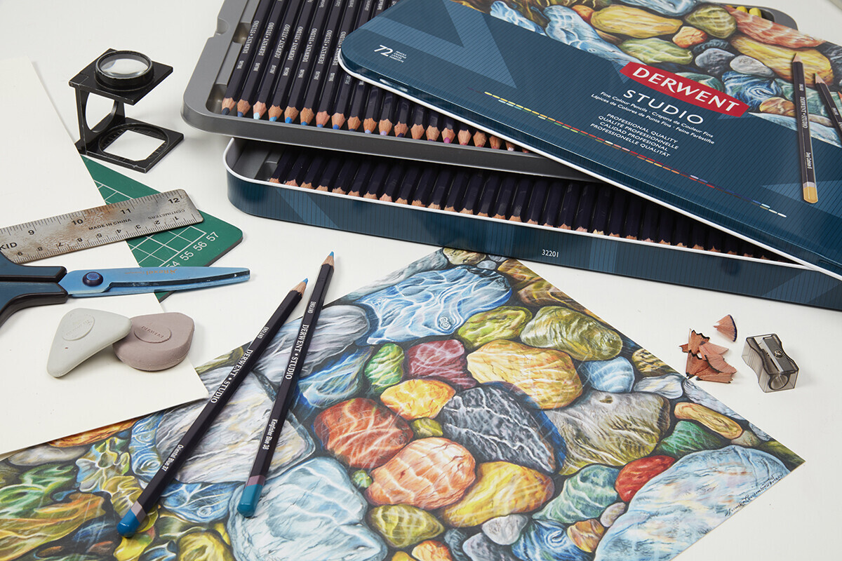Chcete se ponořit do detailů? Pak jsou pastelky Derwent Studio tou pravou volbou pro vás! Šestihranný tvar těla a mísitelná barevná tuha je činí skvělými pro detailní kresby, zejména ilustrace a botanické umění. Dostupné v 72 odstínech jednotlivě i v sadách.